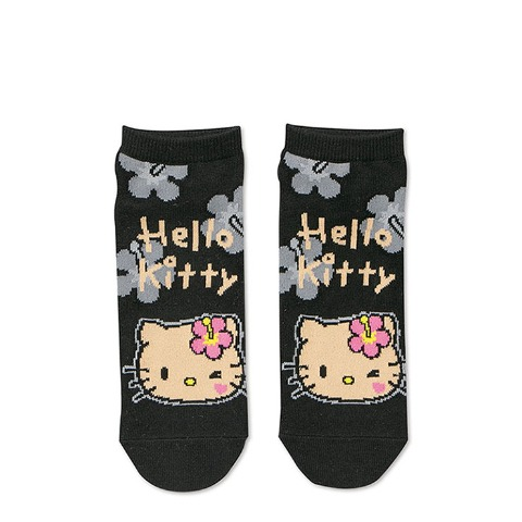 夏らしいハイビスカス柄の日焼けハローキティのスニーカー丈ソックス。
