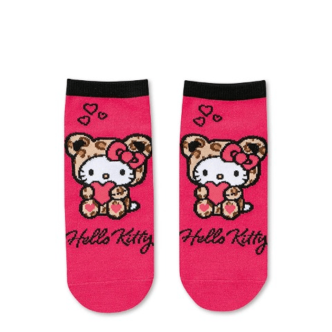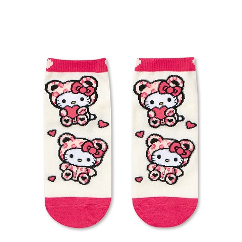 夏らしいハート型サングラスをかけた日焼けハローキティのスニーカー丈ソックス。