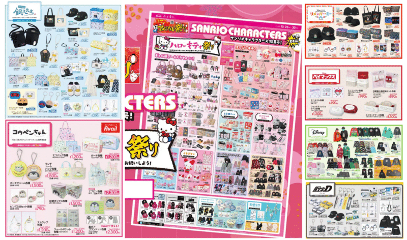 しまむら系列アベイルでは、2025年10月25日(土)~銀八先生、銀魂、サンリオ ハローキティ祭り、初音ミク×シナモロール、ピアプロ、ディズニー、頭文字D、コウペンちゃんなどのコラボを販売します!