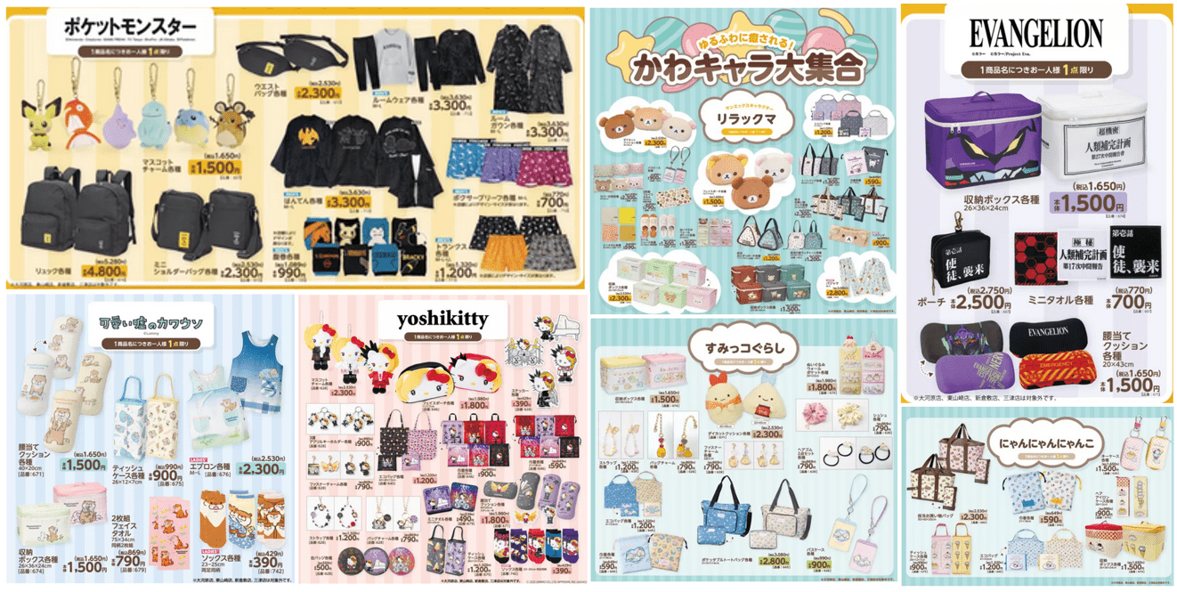 しまむら系列アベイルでは、2025年11月15日(土)~ポケモン、エヴァンゲリオン、リラックマ、ヨシキティ、すみっコぐらし、にゃんにゃんにゃんこ、可愛い嘘のカワウソなどのコラボを販売します!