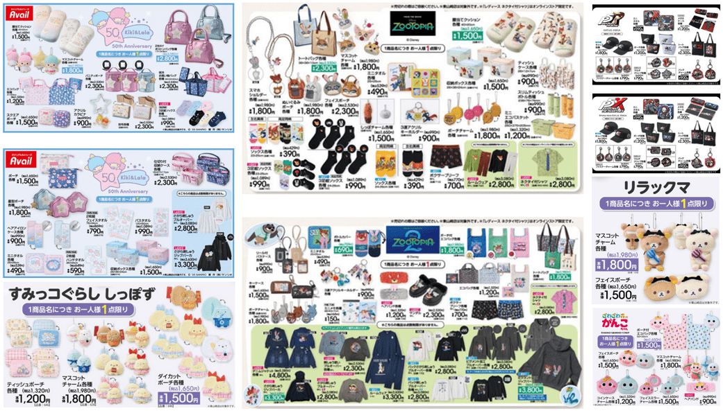 アベイルは、2025年12月13日(土)~ズートピア、ペルソナ、リトルツインスターズ、リラックマ、すみっコぐらし、がんこちゃんなどがラインナップ!