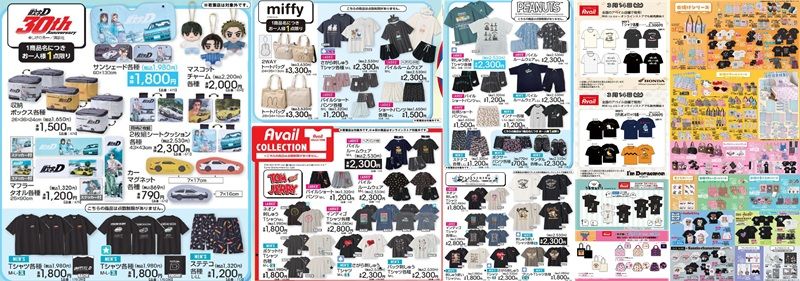 アベイルは、2026年3月14日(土)~頭文字D、ミッフィー、トムとジェリー、スヌーピー、サンリオ、ドラえもんなどがラインナップ!