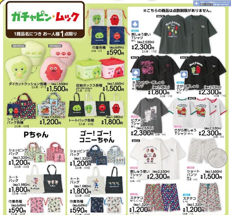 アベイル『ガチャピン、ムック』コラボ!全商品・最新の発売日・種類・品番・オンライン・再販まとめ!取扱店はどこ?