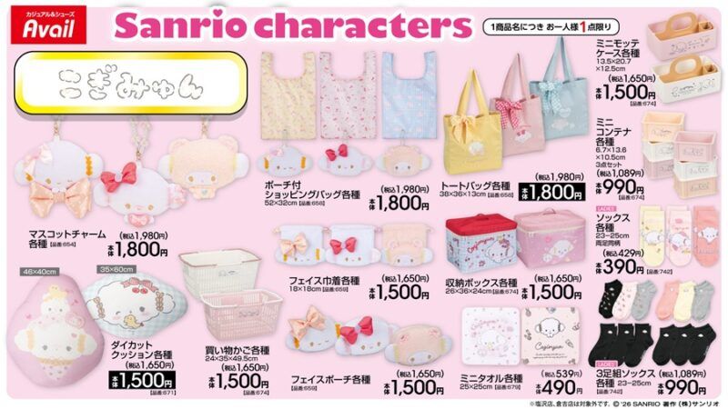 アベイル『サンリオ』コラボ!全商品・最新の発売日・種類・品番・オンライン・再販まとめ!