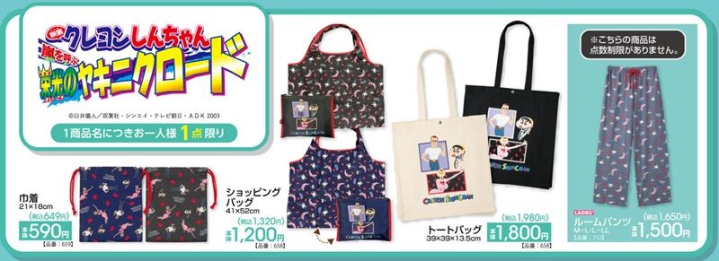 しまむら系列アベイル『映画クレヨンしんちゃん 嵐を呼ぶ 栄光のヤキニクロード』コラボの新作を、2026年2月28日(土)~販売します。ルームパンツ、ショッピングバッグ、トートバッグ、巾着がラインナップ!
