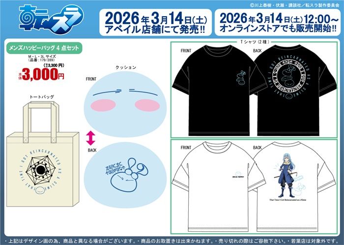 3/14(土)~ 全国の #アベイル 店舗にて『#転生したらスライムだった件』のメンズハッピーバッグが発売!