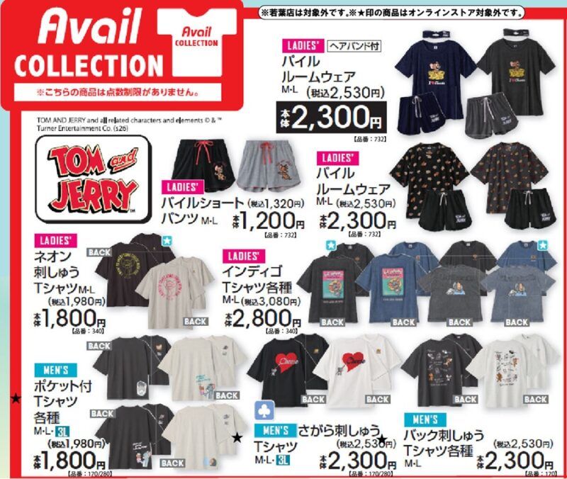 ≪商品ラインナップ≫アベイル(Avail)『トムとジェリー』コラボ 2026年3月14日(土)