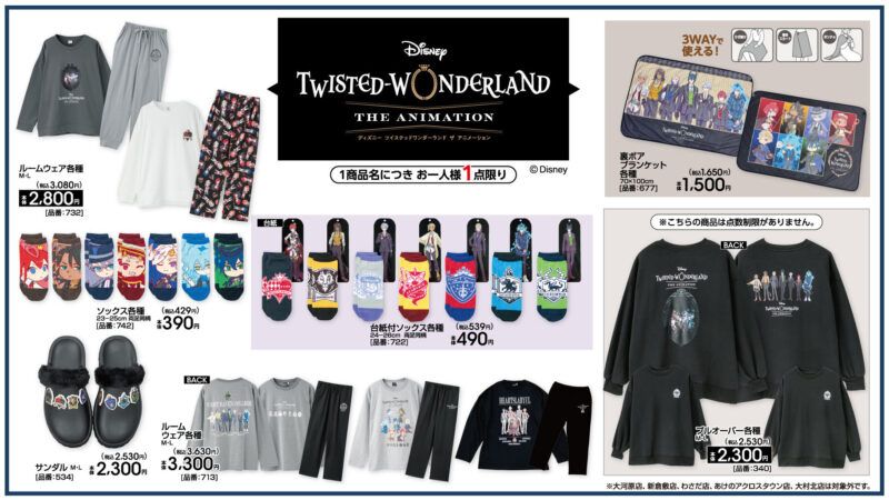しまむら系列アベイル『ディズニー ツイステッドワンダーランド(ツイステ)』コラボの新作を、2025年11月1日(土)~販売します。推しぬいポーチ、アクスタ、タオル、トートバッグ、ルームウェア、ブランケット、トレーナーなどがラインナップ!
