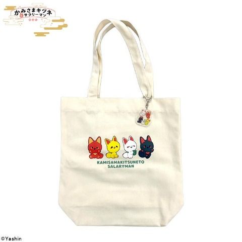アクリルキーホルダー付トートバッグ(かみさまキツネとサラリーマン) 2,300円(税込 2,530円)