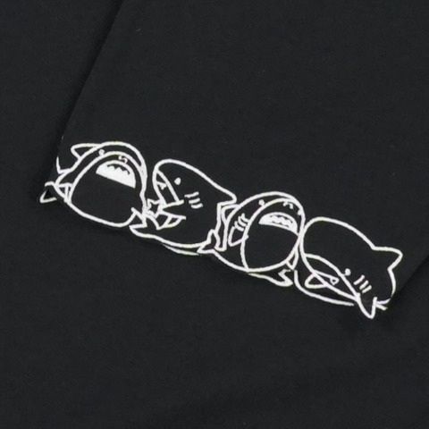 袖にサメ刺しゅうを施したTシャツです。