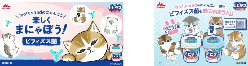 森永乳業は「ビヒダス ヨーグルト」と、大人気キャラクター「mofusand(モフサンド)」のコラボを開催しています!