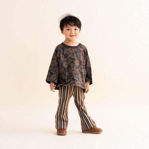 ブラウン、ネイビー、アイボリーなどアースカラーをベースとした、シンプルなスタイルに色と形、素材にこだわった子供服が展開です!