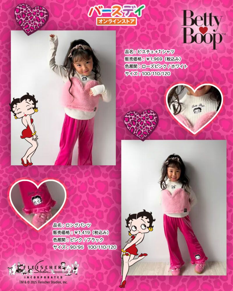 バースデイ『ベティちゃん(ベティーブープ)』コラボを2025年10月22日(水)~販売します。トレーナー、パンツの秋冬の子供服がラインナップ!