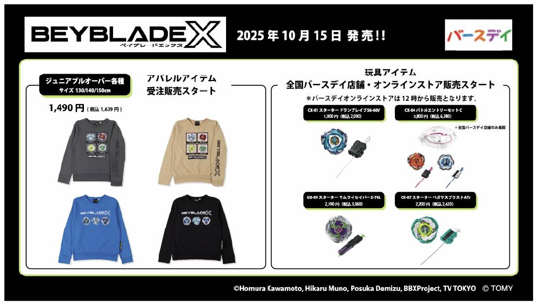 バースデイでは『ベイブレードX』コラボを2025年10月15日(水)~発売します。プルオーバー、玩具がラインナップ!