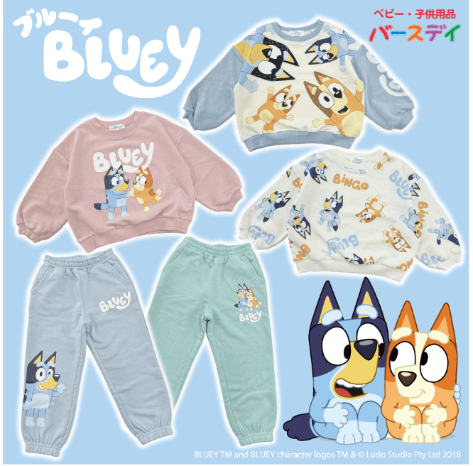 しまむら系列バースデイでは『ブルーイ(bluey)』コラボのグッズを販売しています!秋冬のアパレルがラインナップ!
