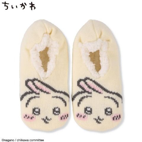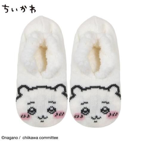 大きなちいかわの顔が可愛い内側ボア素材のカバーソックスです。
