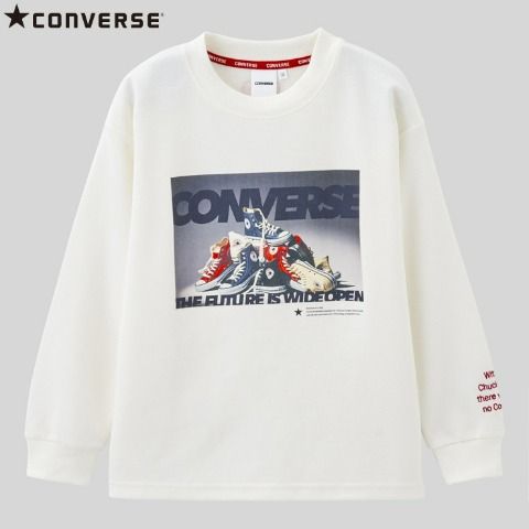 フロントのグラフィックフォトプリントが目を引くCONVERSEの長袖Tシャツ。