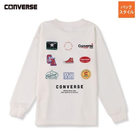 バックにロゴアイコンがずらりと並んだCONVERSEの長袖Tシャツ。