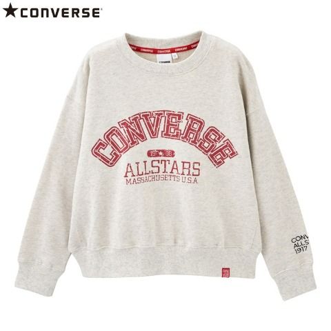 クラシックなカレッジ風ロゴをプリントしたCONVERSEのプルオーバー。