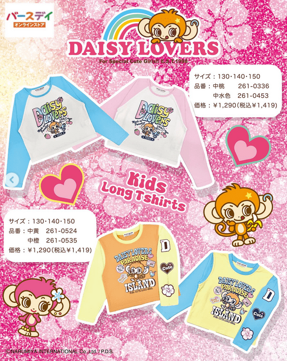 バースデイ『DAISY LOVERS(デイジーラヴァーズ)』コラボ!全商品・最新の発売日・種類・品番・オンライン・再販まとめ!取扱店はどこ?長袖Tシャツが2025/11/19より新発売!