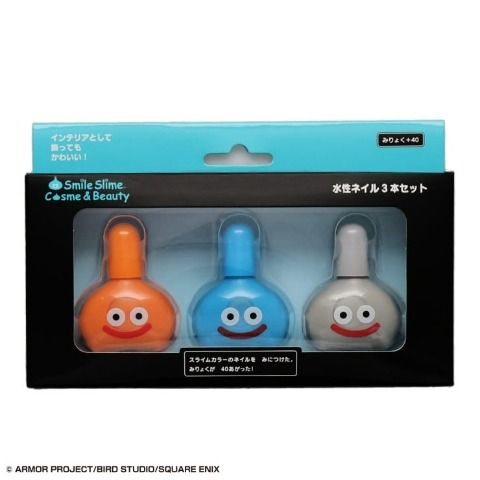 スライム、スライムベス、メタルスライムをイメージした3色の水性ネイルになっています!