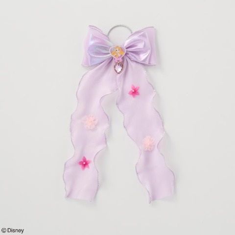 淡いパープルのリボン付きでラプンツェルモチーフハートが歩く度にシャカシャカと揺れる♪
