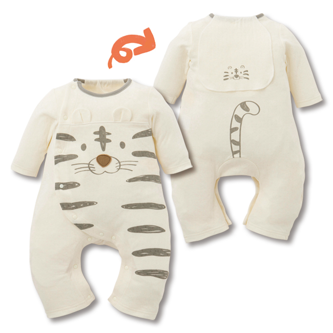 ミルクの時にぬぐったり、背中や頭の汗取りに便利な大きめビブ付き