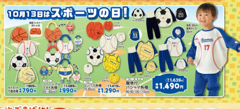 バスケットボール、バレーさっまー、野球などの可愛いベビー服や巾着がラインナップ!