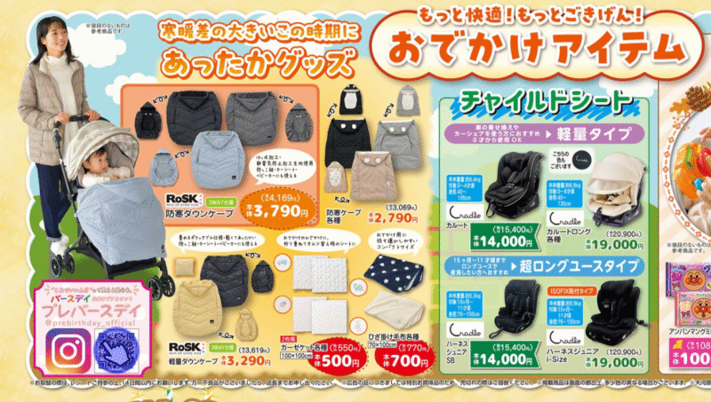 お出かけアイテムから、秋冬に活躍のあったかグッズが展開します!