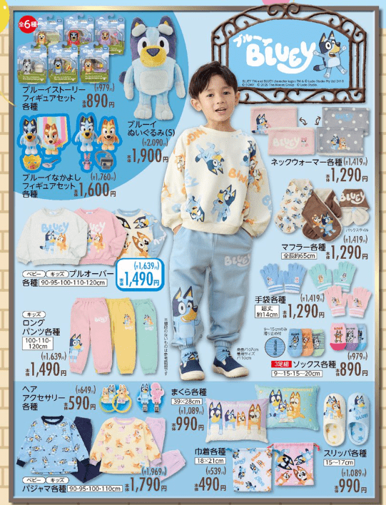 バースデイ チラシ速報2025年10月15日~ブルーイ、ポムポムプリン、マイリトルワンダー、ポケモン、ぴよりん、ミニボーロ、カットよっちゃん、⁣タラタラしてんじゃね〜よコラボの秋冬子供服や雑貨が新発売!