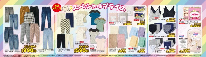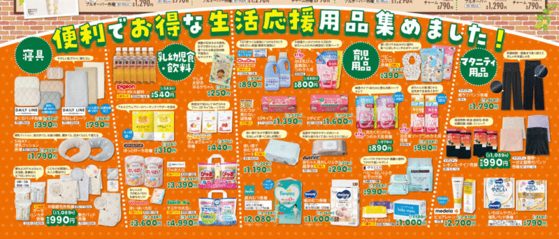 生活応援用品では、寝具、乳幼児食・飲料、育児用品、マタニティ用品などの便利でお得なアイテムが展開します。