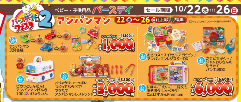 創業祭の目玉商品として、アンパンマンのおもちゃが販売します!