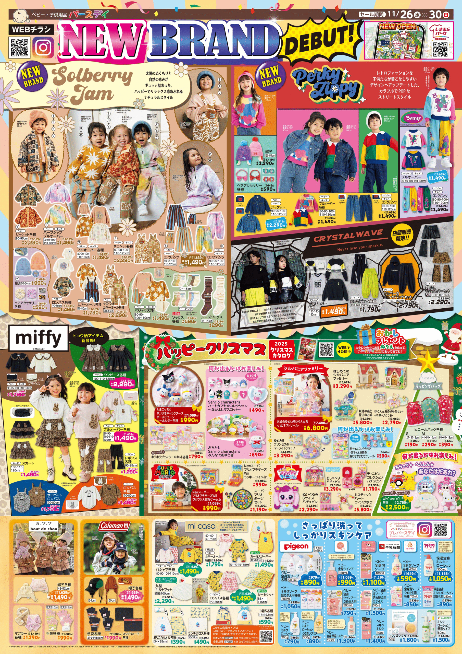 バースデイ チラシ速報2025年11月26日~ミッフィーのヒョウ柄子供服が新発売!a.v.v(アー・ヴェ・ヴェ)、Coleman(コールマン)の防寒グッズも冬にオススメ!