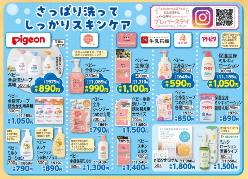 乾燥するシーズンに便利な、ベビー用のスキンケアアイテムも販売します。