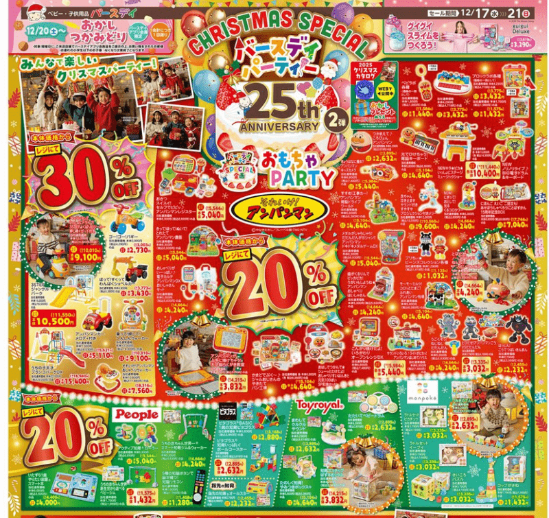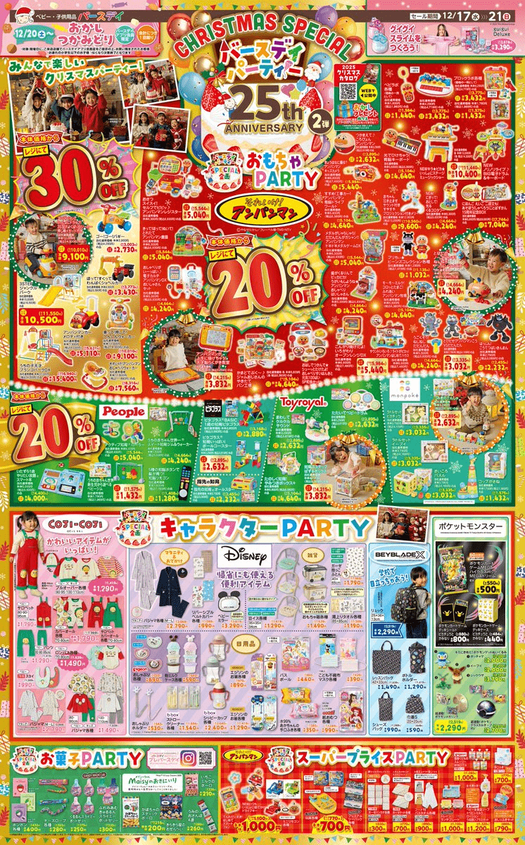 バースデイ チラシ速報2025年12月17日~アンパンマン、コジコジ、ベイブレードXのコラボも!クリスマススペシャルでポケカやおもちゃ、お菓子などもお買い得!