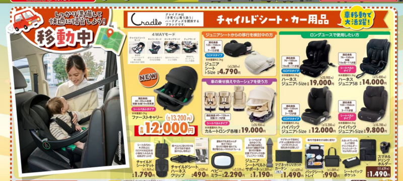 規制準備特集で、チャイルドシート、カー用品、おもちゃなども発売します!