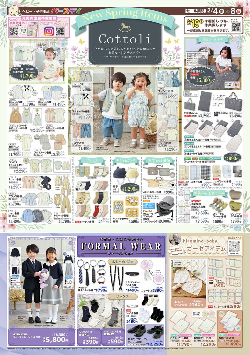 バースデイ チラシ速報2026年2月4日~Cottoli(コトリ)春物新作特集!卒業や入園入学を彩るフォーマルアイテムも新発売!