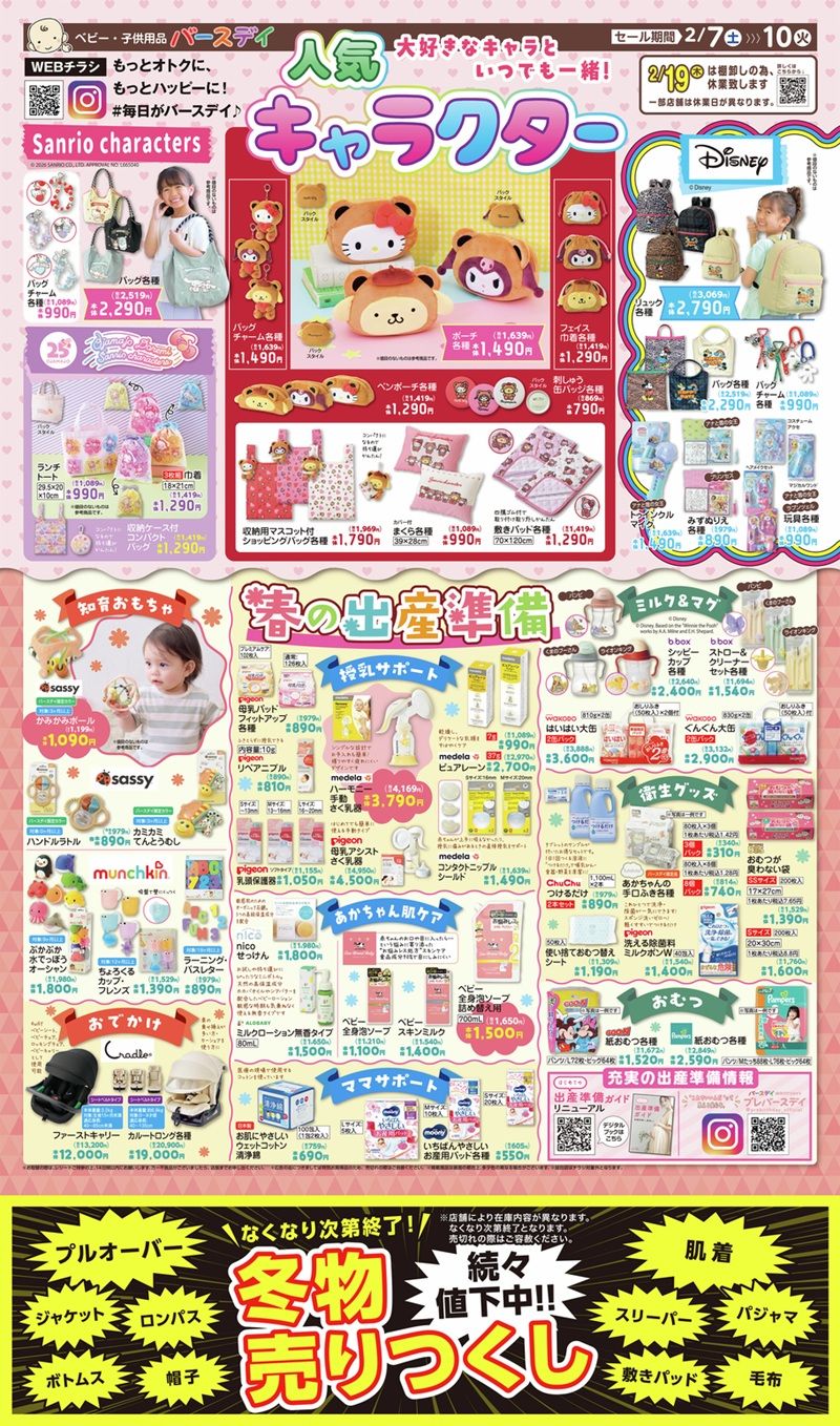バースデイ チラシ速報2026年2月7日~サンリオ クマモチーフの雑貨、おジャ魔女どれみ、ディズニー ミッキー&ミニーのファッション雑貨などが新発売!