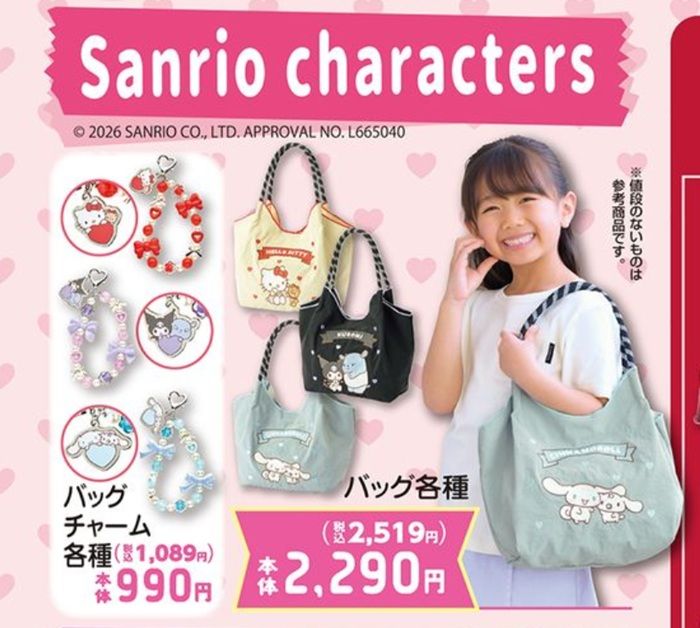また、サンリオのバッグ、バッグチャームも販売します!