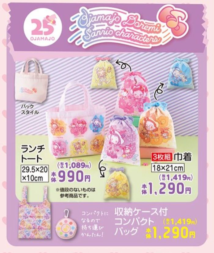 『おジャ魔女どれみ』コラボから、バッグ、巾着、収納ケース付きコンパクトバッグが販売します!