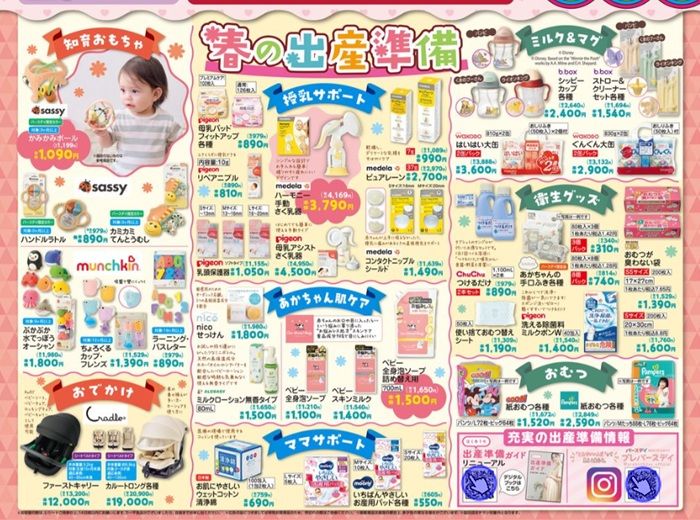 春の出産準備で、知育玩具、授乳サポート、赤ちゃんの肌ケア、衛生グッズ、おむつなども新発売!