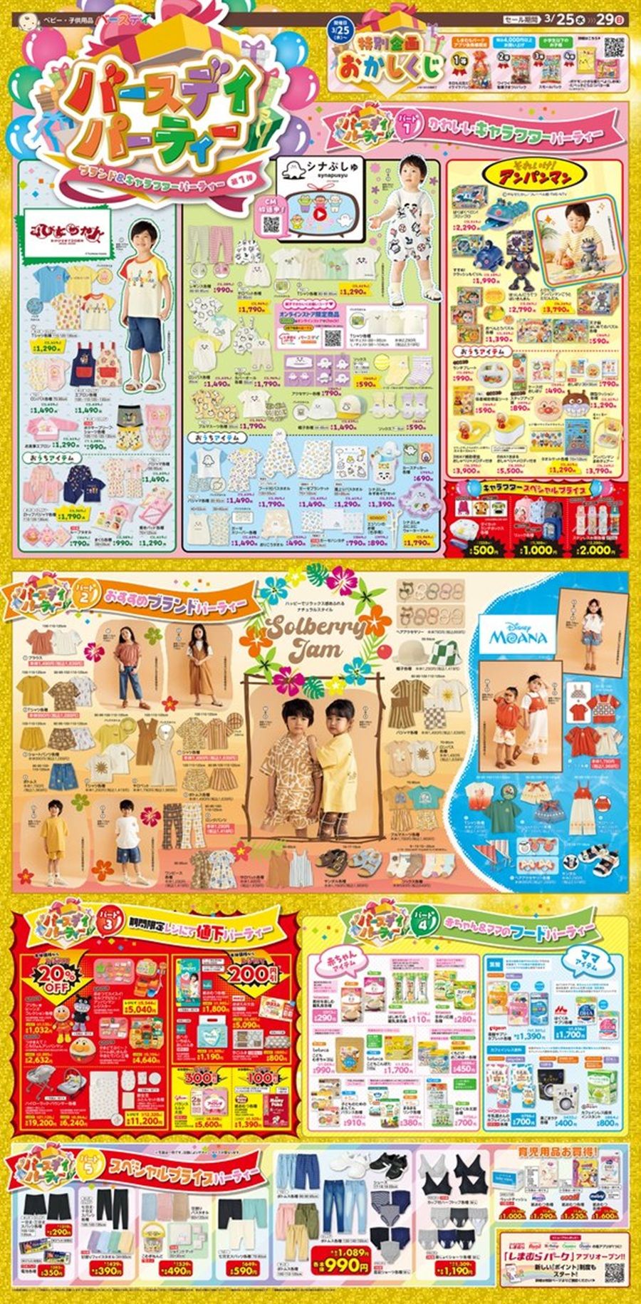 バースデイ チラシ速報2026年3月25日~シナぷしゅ、こびとづかん、Solberry Jam、モアナのサマーコレクションなど夏の子供服が新発売!バースデイパーティー第1弾がスタート!