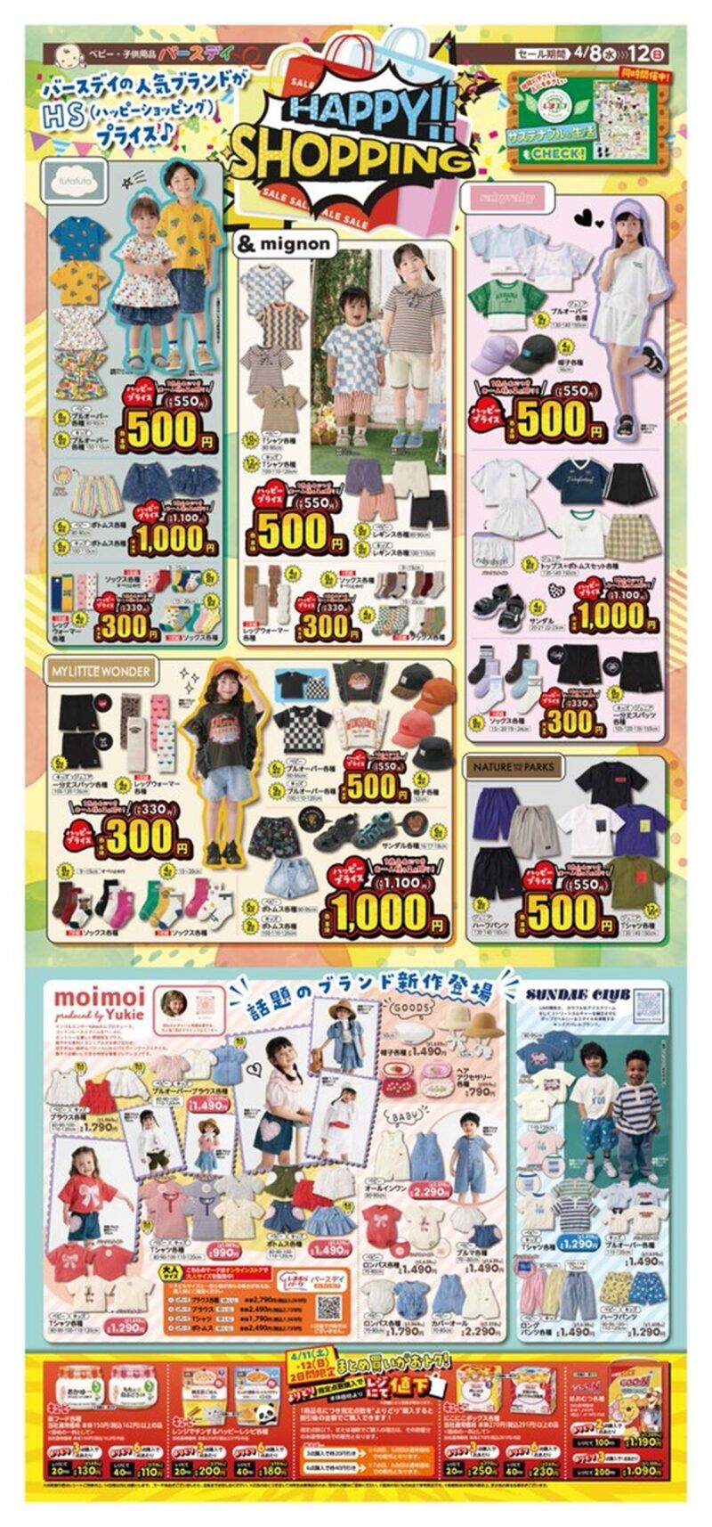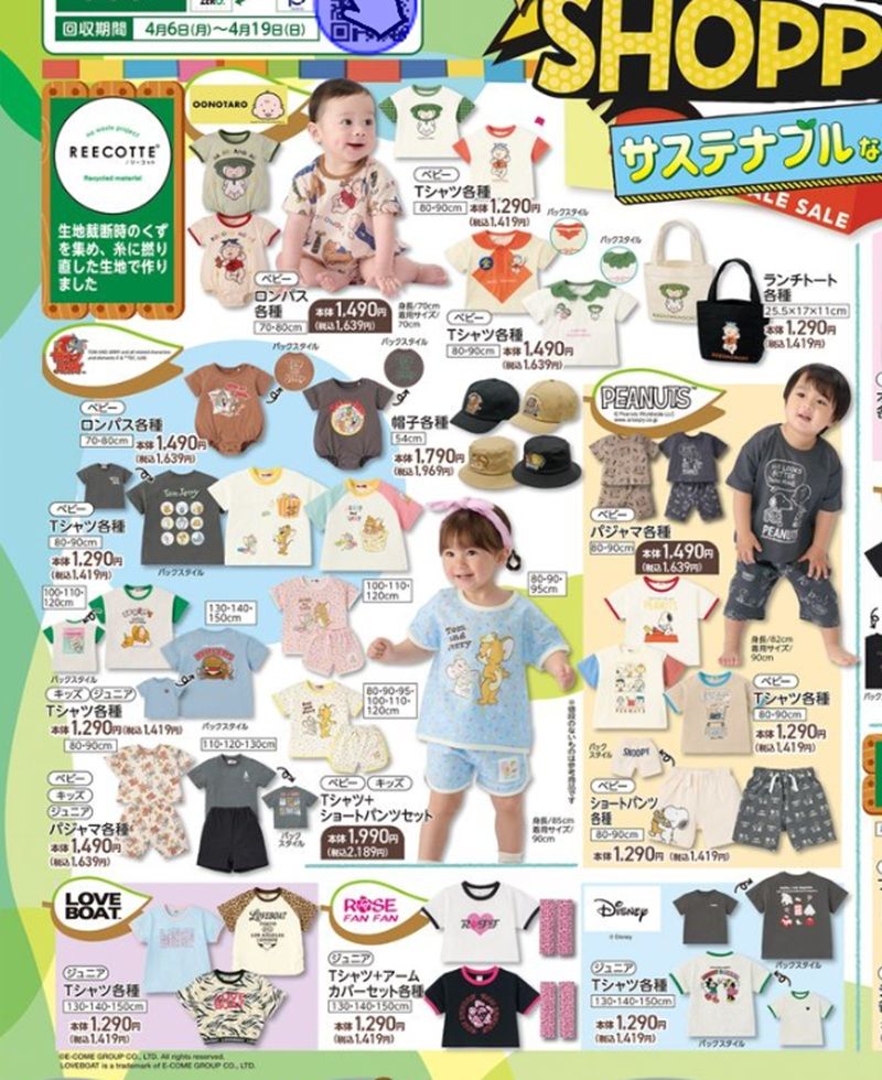 バースデイ チラシ速報2026年4月8日~サスティナブル特集!トムとジェリー、スヌーピー、ラブボート、ディズニーからTシャツやパンツの新作が発売!moi moi(モイモイ)からも夏のアイテムが登場!