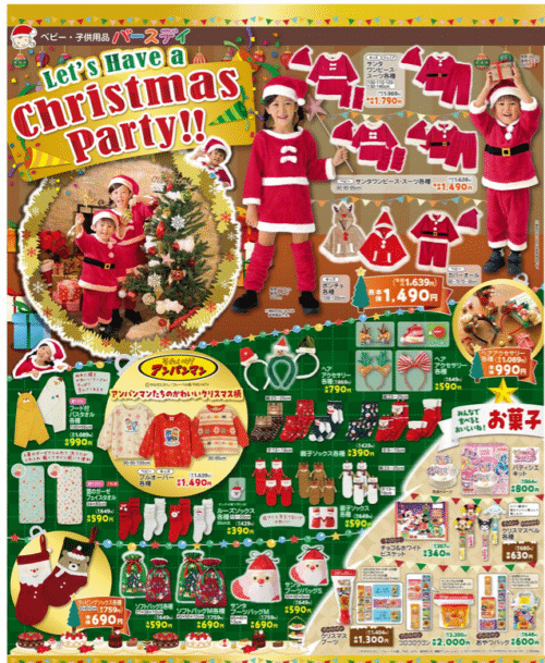 - バースデイ チラシ速報2025年10月29日~クリスマスの商品が発売!フタフタ、テータテート、コトリ、マイリトルワンダー、アンパンマン!サンタやトナカイのコスチューム、プレゼントにオススメのおもちゃ、りくななタウン×ディズニーのテントなども新発売!