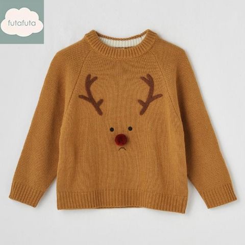 トナカイのモチーフを使用した編み柄のデザインがかわいいです。
