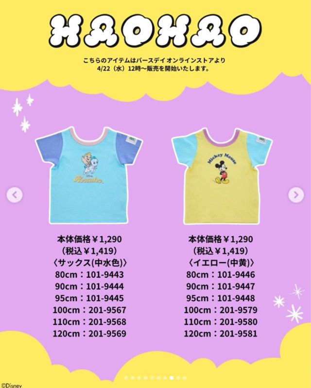 しまむら系列バースデイでは『HAOHAO(ハオハオ)』コラボを販売しています!ベビー、キッズサイズの子供服を展開!