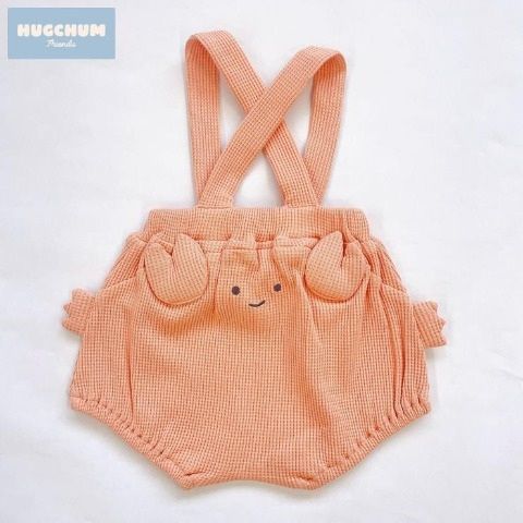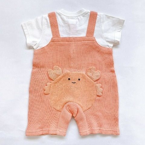 カニさんをモチーフにしたパイル素材のおしりデザインやポケットの立体アップリケがかわいいです。