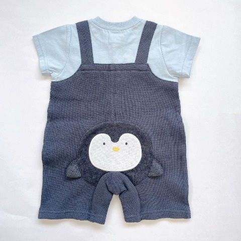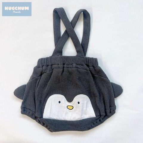 ペンギンさんをモチーフにしたパイル素材のおしりデザインやポケットの立体アップリケがかわいいです。