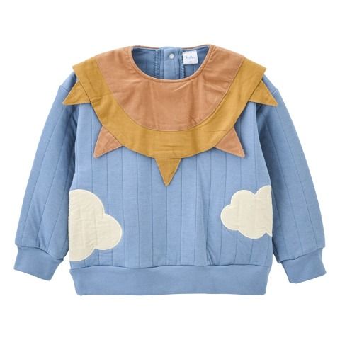 シャツコール素材を使った太陽と雲のアップリケのかわいらしいデザインになっています。