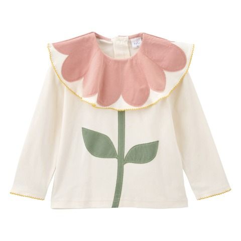 大きな襟がお花のアップリケになったおしゃれなデザインになっています。